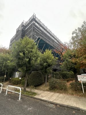 【 写真③:桶川市 足場組立工事(建物全景)】